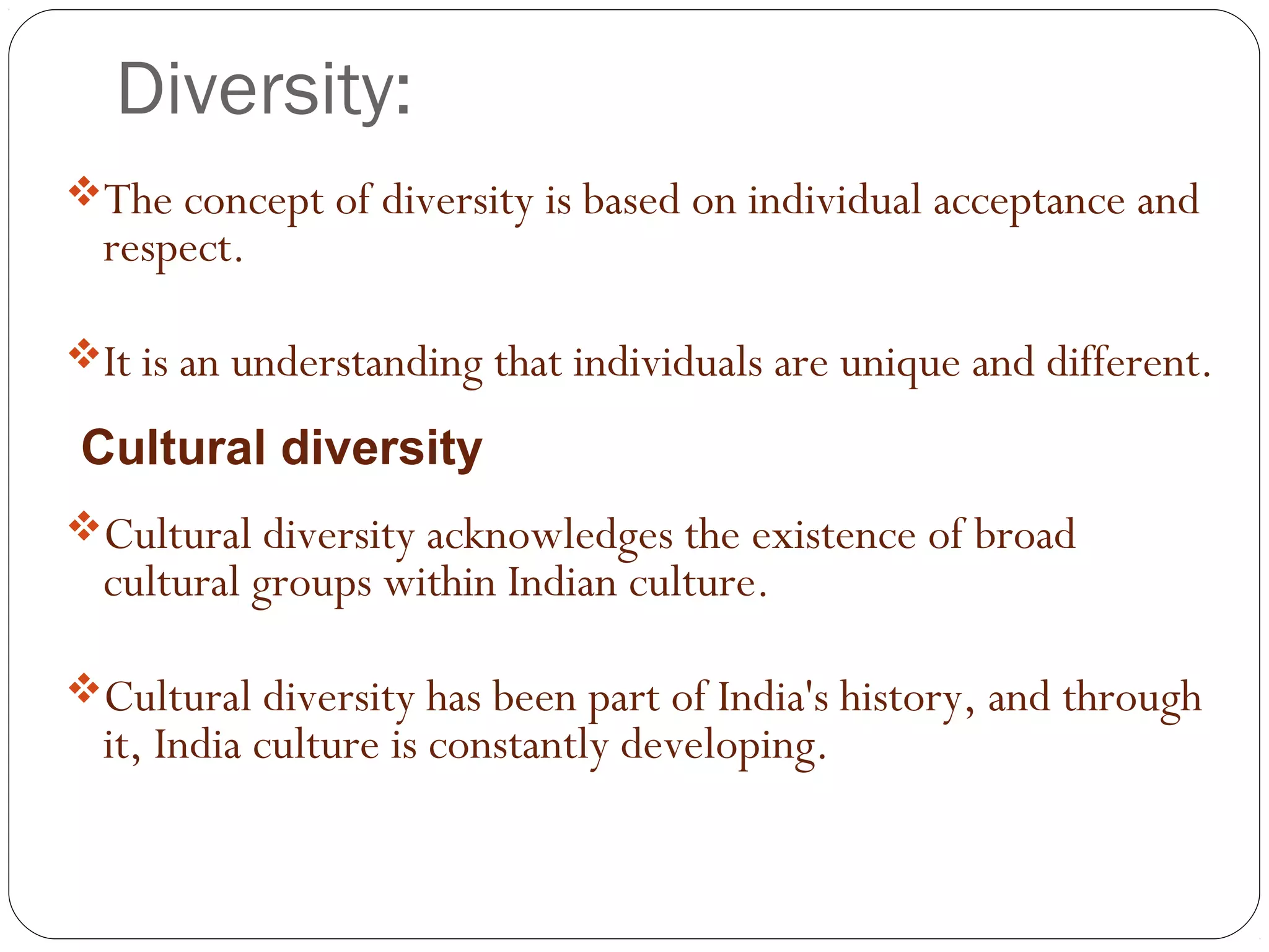 The document discusses diversity and managing diversity in the workplace. It defines diversity as individual acceptance and respect of differences. It lists various elements of diversity including age, gender, ethnicity, and provides ways to incorporate diversity such as recruiting from diverse talent pools. Managing diversity is defined as planning and implementing practices to maximize the advantages of diversity. The benefits of diversity in the workplace include improved customer service, employee morale, and creativity. Challenges of ignoring diversity include conflicts and loss of productivity.