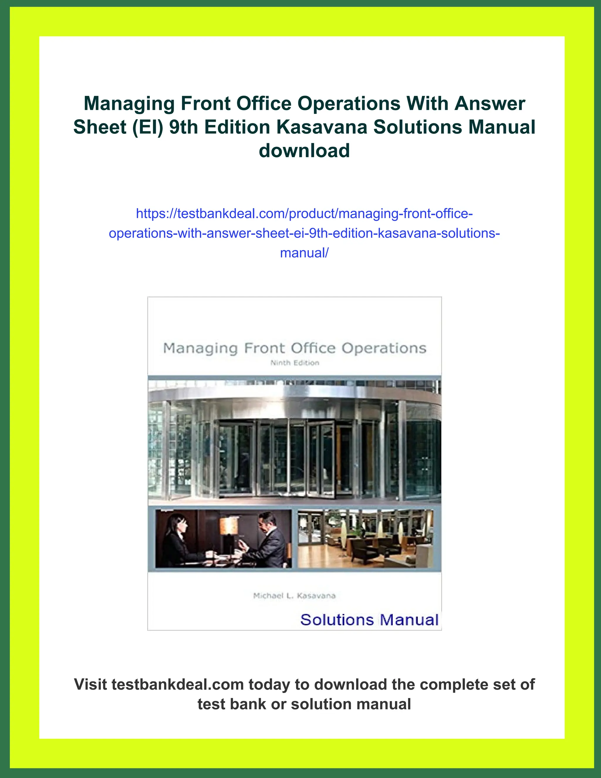 Managing Front Office Operations With Answer Sheet (EI) 9th Edition Kasavana Solutions Manual