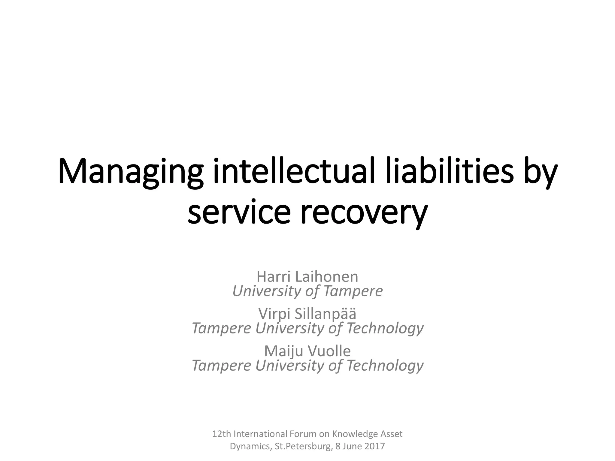This study explores the management of intellectual liabilities in customer encounters, particularly in the construction industry, by integrating service recovery strategies and theoretical frameworks from literature. Key findings highlight the importance of addressing customer expectations, enhancing communication, and implementing effective service recovery practices to mitigate these liabilities. The research identifies specific challenges in the customer journey and provides practical guidelines for organizations to improve their management of intangible assets.