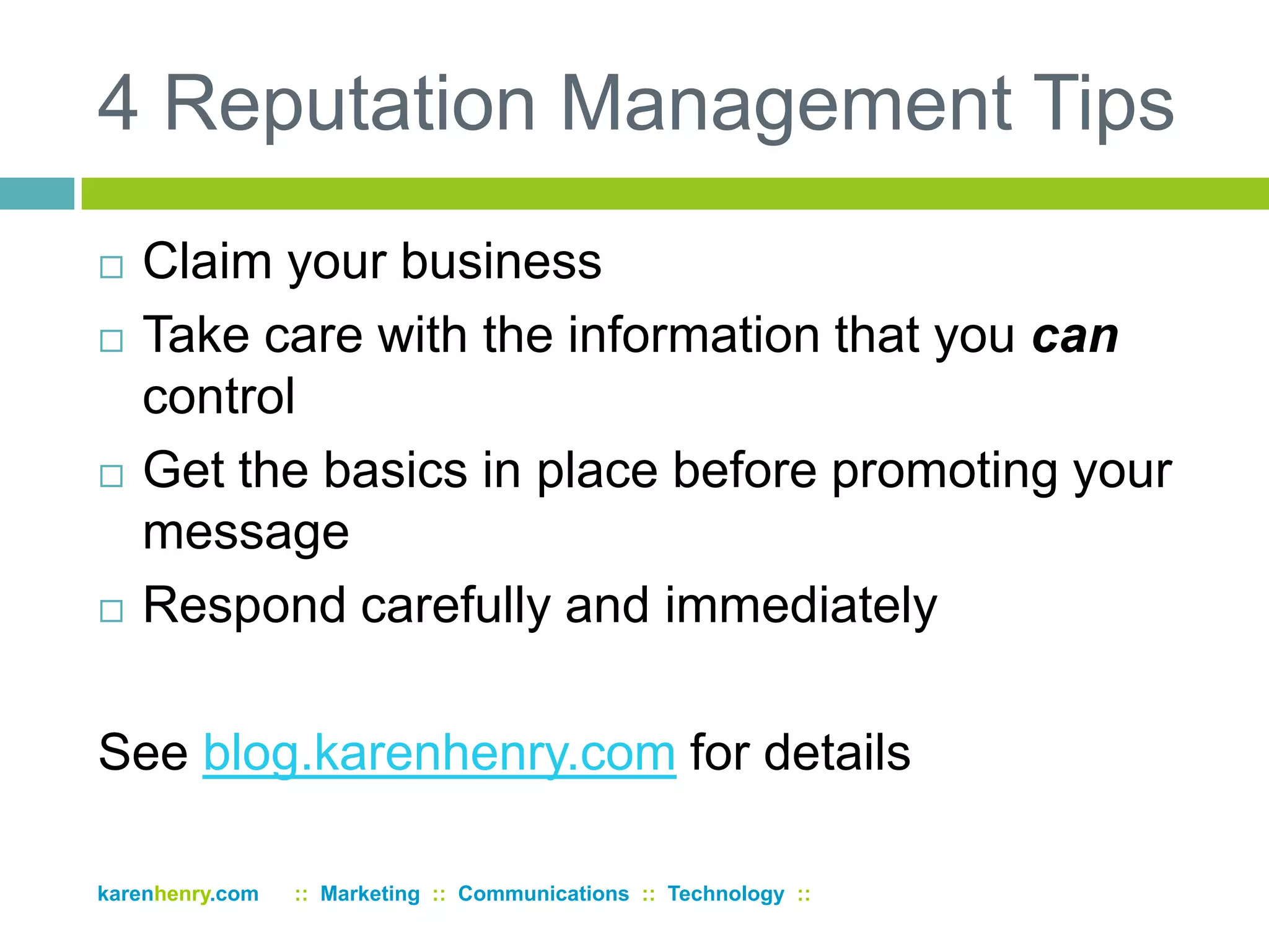 The document discusses reputation management strategies for businesses, emphasizing the importance of controlling online information, responding promptly, and having foundational elements in place before promoting a brand. It highlights various scenarios involving companies' online presences and responses, illustrating the consequences of neglecting these factors. For more insights and examples, the document directs readers to the author's blog.