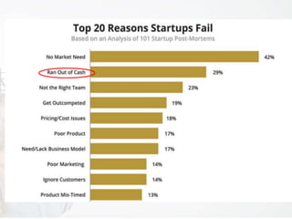 The document presents an agenda focused on bootstrapping startups, discussing sources of finance, financial management, surviving tough times, and fundraising trends. It provides practical tips for founders, including leveraging personal connections for resources and managing finances efficiently. Additionally, it addresses common fundraising questions and outlines important financial management principles.