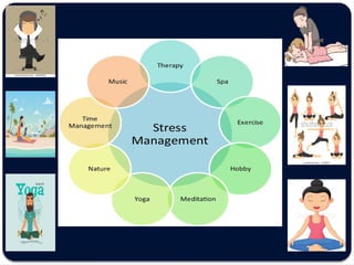 Stress occurs when demands exceed resources, leading to negative reactions in the workplace. Job stress arises from unmet work demands and poor communication, impacting employee health and organizational success. Effective stress management strategies include building support systems, maintaining a positive attitude, and promoting wellness programs to mitigate the effects of stress.