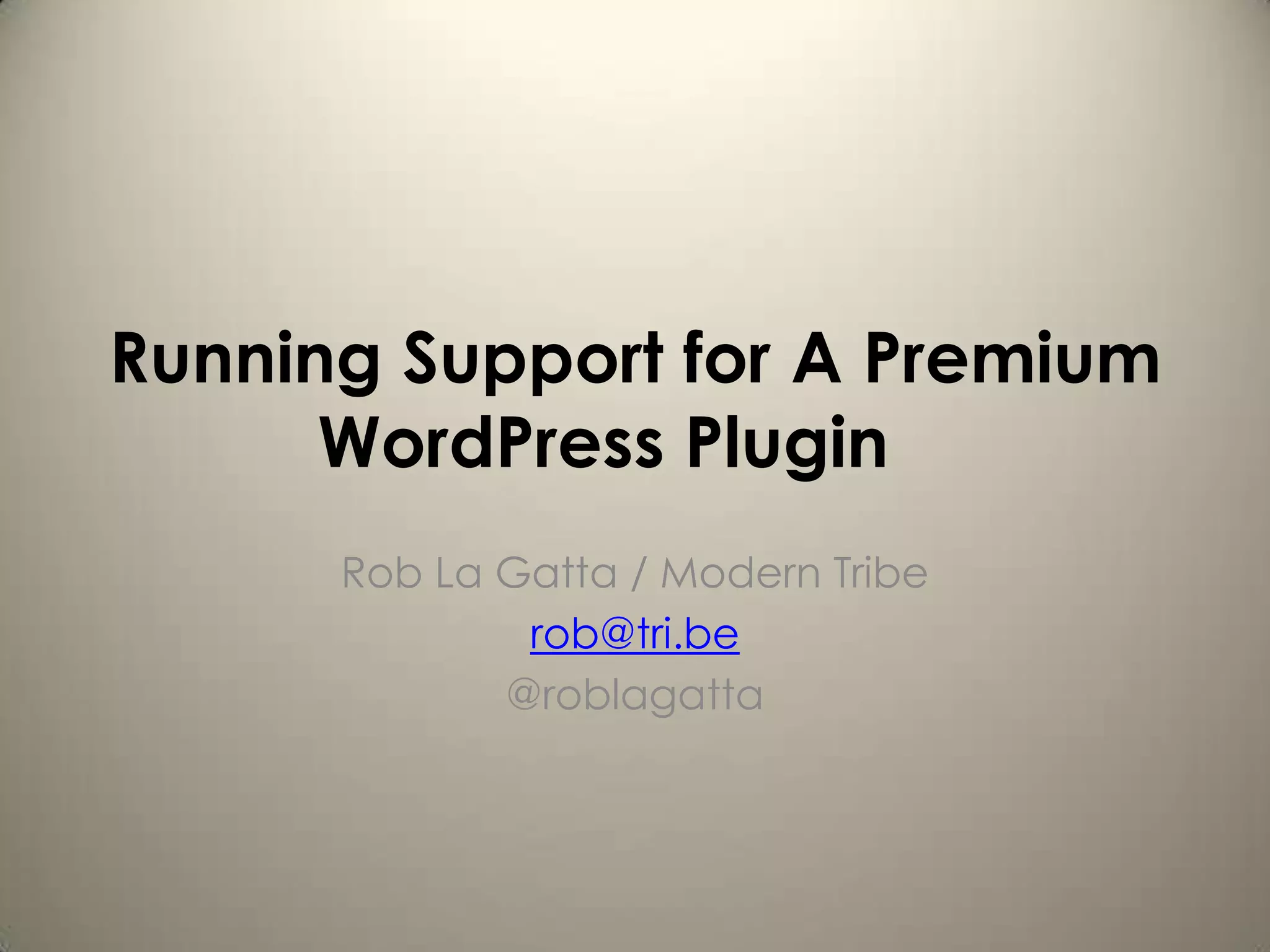 This document provides advice and best practices for running effective support for a WordPress plugin. It discusses the importance of: