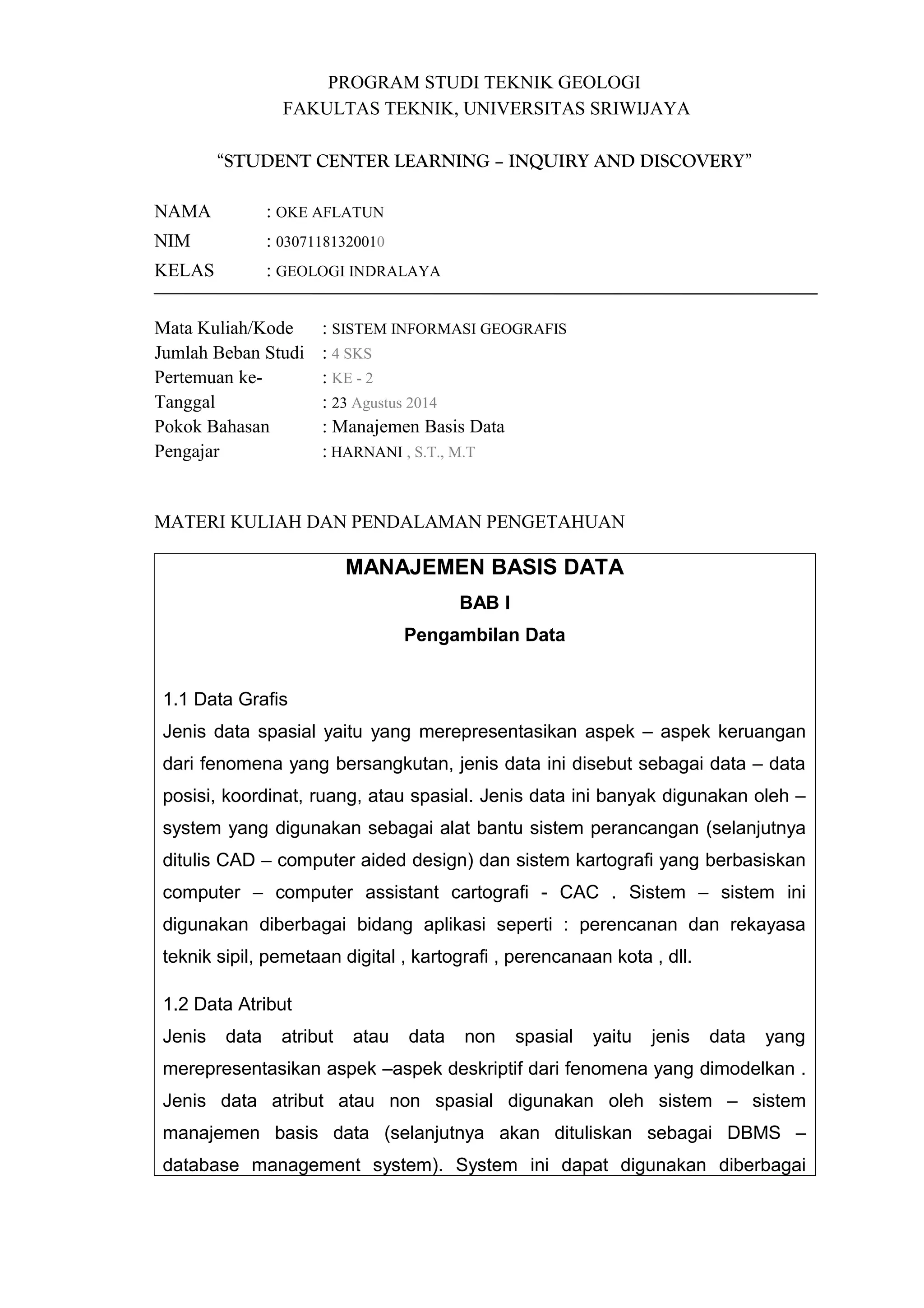 Dokumen tersebut membahas tentang sistem manajemen basis data, yang mencakup pengertian, manfaat, komponen, model, dan operasi dasar dari sistem manajemen basis data. Dokumen ini juga membahas jenis data grafis dan atribut serta proses pengolahan data mulai dari pengumpulan, klasifikasi, penyortiran, perhitungan, penyusunan laporan, penyimpanan, pencarian, dan komunikasi data.