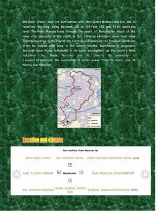 Manchester is a city in Greater Manchester, England, with a 2009 population estimate of 483,800, making it the seventh-most populous district in England. It has a rich industrial history and has transitioned to a service-based economy, being recognized as one of the fastest-growing cities in the UK. The city is known for its cultural contributions, including a vibrant music scene, numerous sporting events, and various educational institutions.