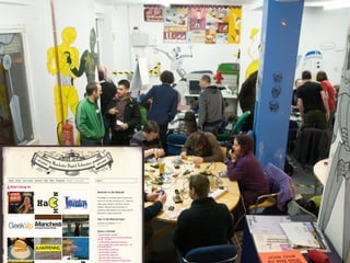The document summarizes Manchester's digital agenda and initiatives to promote smart, sustainable growth through digital transformation. Key efforts include establishing the Manchester Digital Development Agency to coordinate the digital agenda, promoting open innovation and open data, developing a connected "living lab" testbed, and working towards a vision of a future smart city that uses digital technologies to improve quality of life.