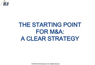 The document provides guidance on strategic mergers and acquisitions. It discusses evaluating whether to build capabilities organically or acquire them. Key considerations for the "make vs buy" decision include whether organic growth will be too expensive or slow, if there is a value mismatch that prevents internal development, or if unique assets only allow acquisition. The document also emphasizes that acquisitions should fit a company's strategic direction and competitive advantage. It introduces a framework for analyzing acquisitions based on the resources, processes, and values that are being obtained.