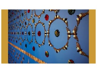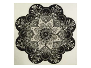 Mandalas use symmetrical shapes and patterns to create a focal point around a central image. They symbolize spiritual meanings and can help people understand themselves and important life experiences. Mandala art comes from traditions around the world and has been used for thousands of years as a process of self-expression and spiritual transformation. This assignment asks students to create a self-portrait mandala using symbols, animals, colors, and shapes that represent themselves, their culture, spirituality, or interests to reveal parts of their identity. Research into personal symbols and spirit animals is encouraged to inspire designs.