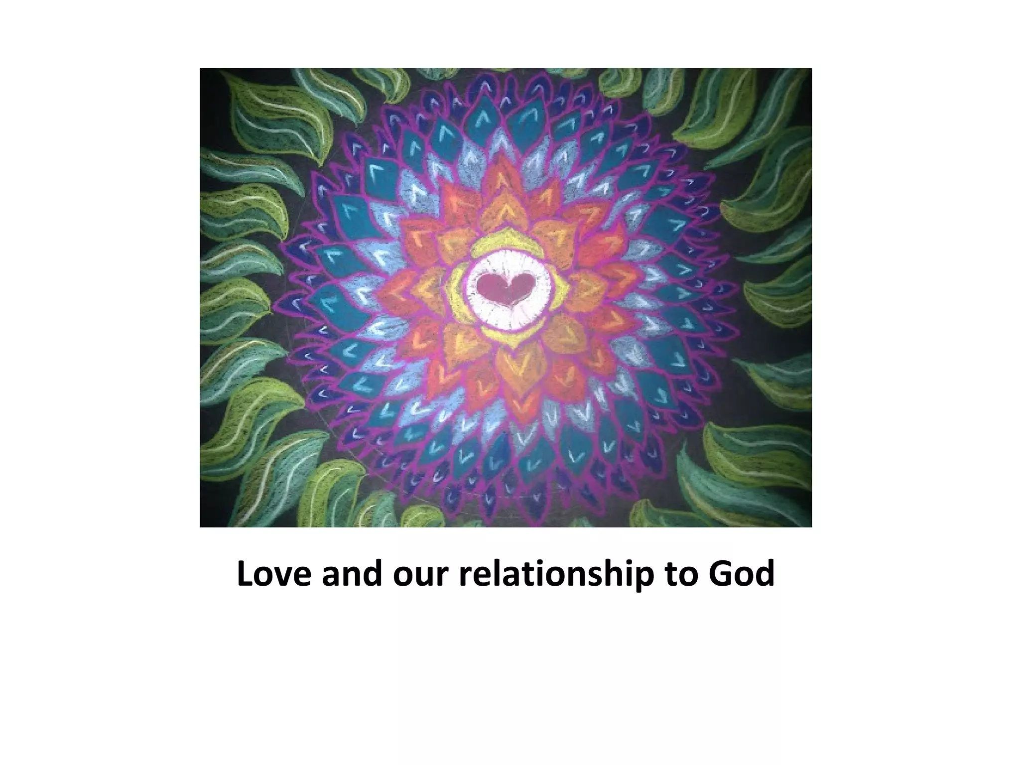 Love is our relationship to God, as described in John 13:34 where Jesus commands his followers to love one another as he has loved them. The document discusses how the mandala symbol represents the theme of love. It encourages readers to promise themselves to an application of love in their lives through their relationship with God.