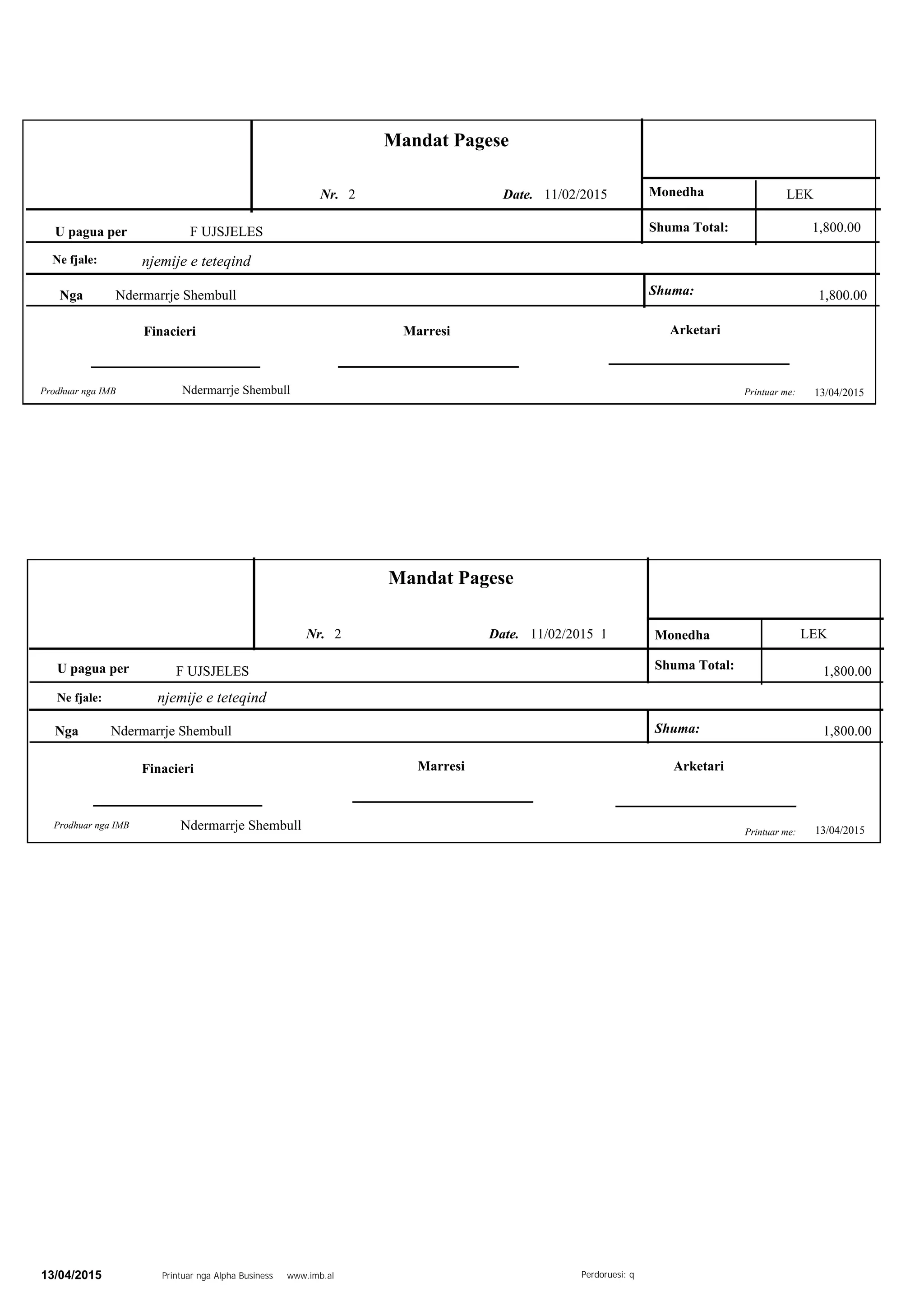Perdoruesi: qPrintuar nga Alpha Business www.imb.al13/04/2015
