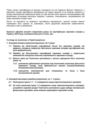 послуг із зберігання зерна в Україні, а також надає рекомендації з реформування підходів