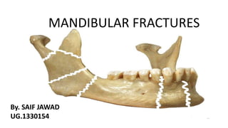 The document discusses mandibular fractures, including:
