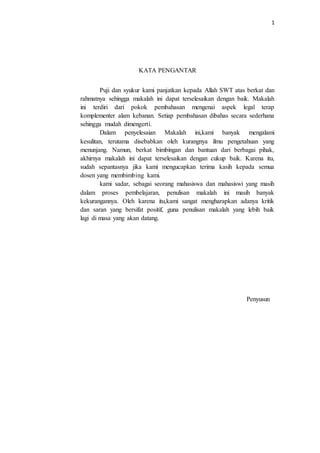 Dokumen ini membahas pentingnya terapi komplementer dalam pelayanan kebidanan, menjabarkan aspek legal dan berbagai jenis terapi yang dapat diterapkan oleh bidan di Indonesia. Meskipun belum ada regulasi khusus, pengobatan komplementer dikategorikan sebagai bagian dari upaya meningkatkan kesehatan masyarakat secara menyeluruh. Terapi seperti hipnoterapi, pijat urut, dan aromaterapi telah diintegrasikan dalam praktik kebidanan untuk mendukung kesehatan ibu dan anak.