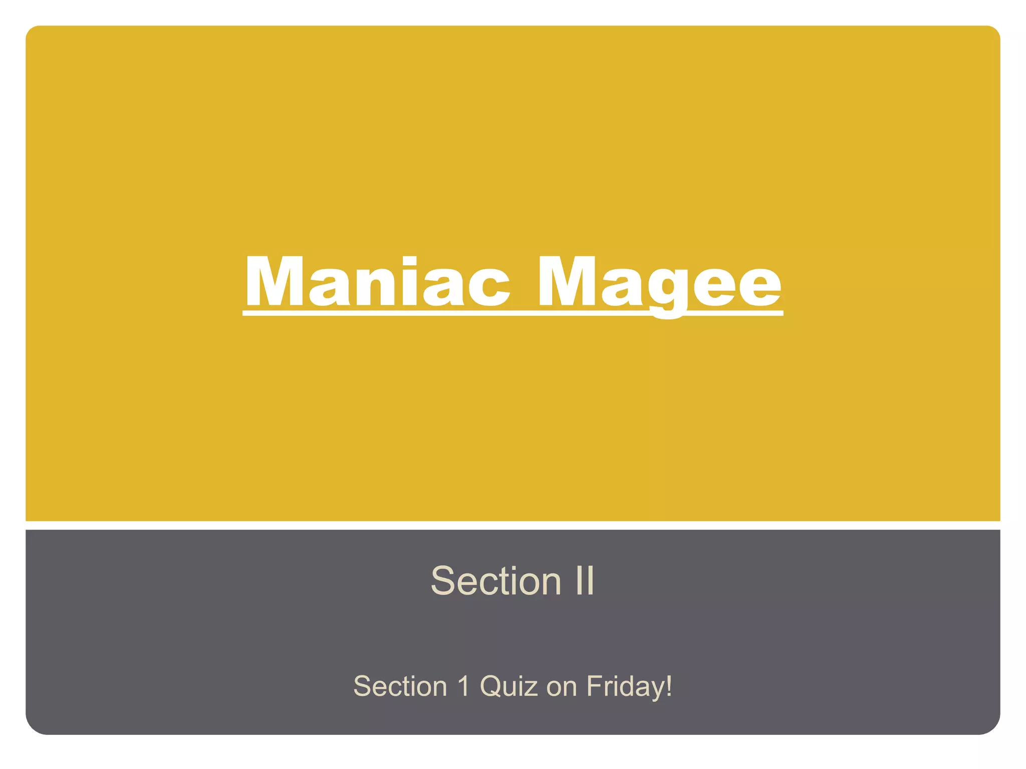 Maniac Magee tells the story of a young orphan boy who is skilled at unusual physical feats like climbing hydrants without using his hands. After witnessing the boy's contortions, the neighborhood children are left gawking and vow to follow his adventures from afar.