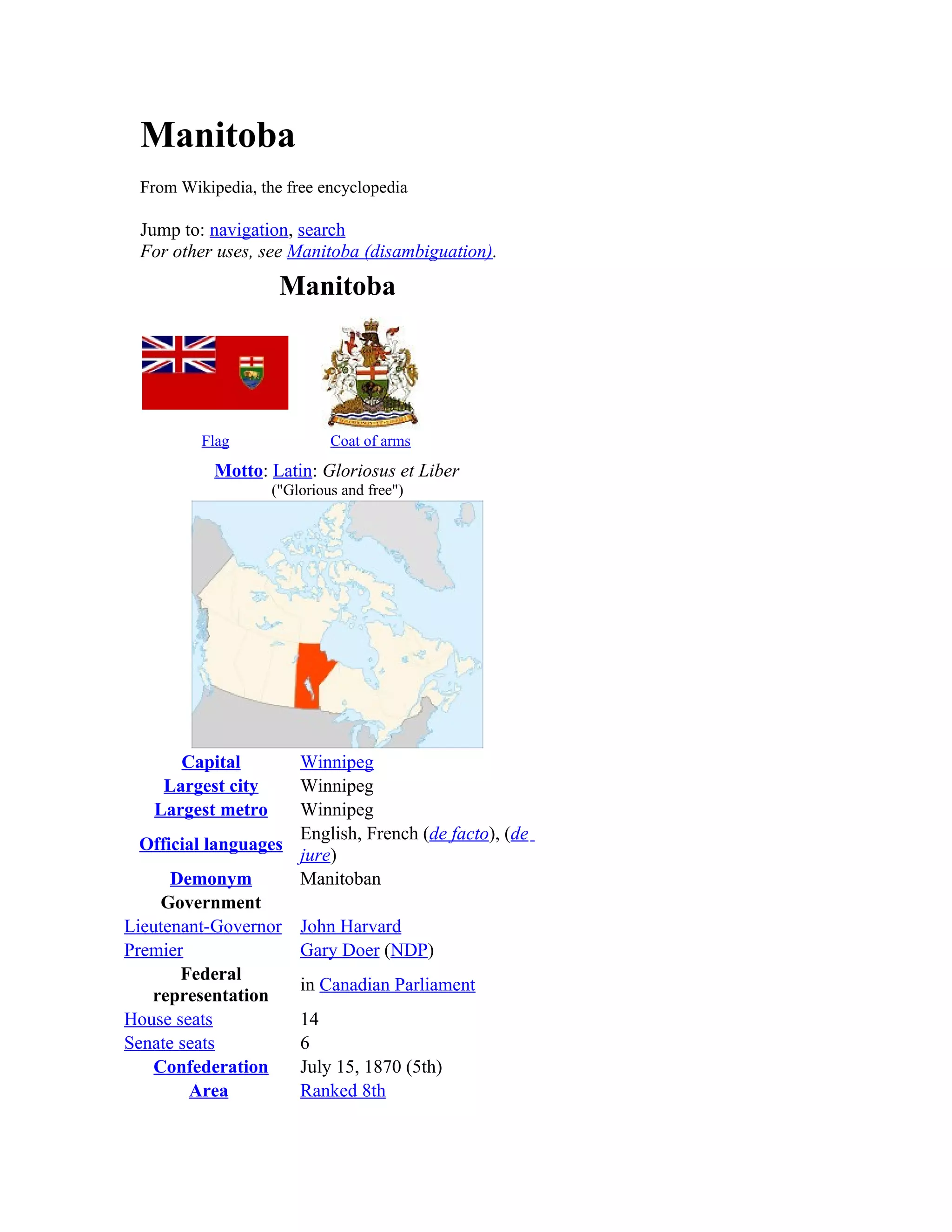 Manitoba is a prairie province located in central Canada. It has a population of over 1.2 million people, with about 60% living in the capital region of Winnipeg. Manitoba has a diverse geography that includes forests, prairies, lakes (including Lake Winnipeg), and coastline on Hudson Bay. The climate ranges from subarctic in the north to humid continental in the south. Manitoba entered confederation in 1870.