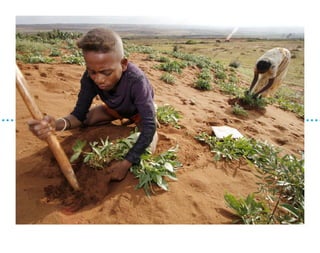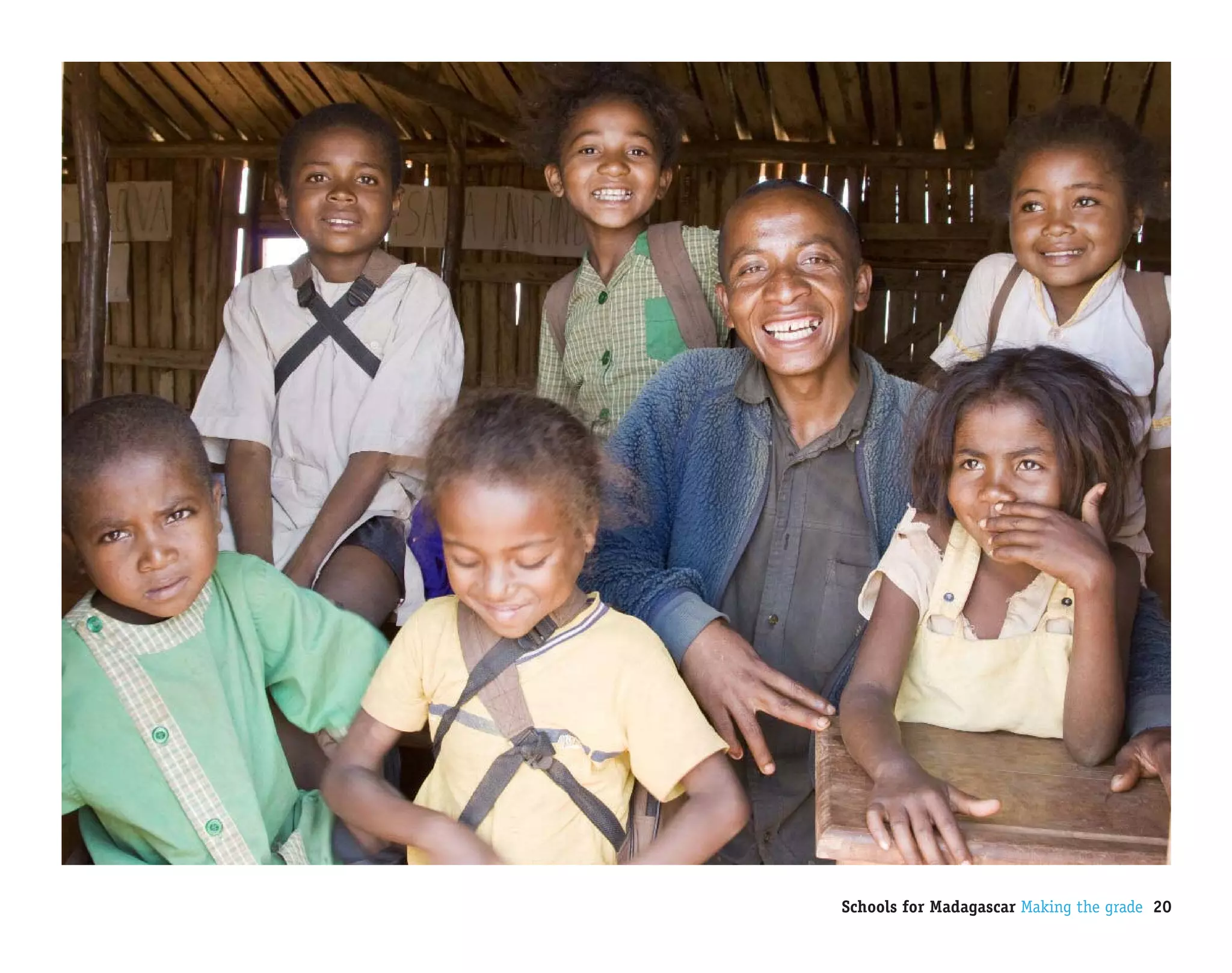 The document discusses the challenges and efforts for improving education in Madagascar, particularly in the Ankilimanintsy II village and Ambovombe district, where community-driven initiatives play a crucial role in building schools. Parents are being motivated to send their children to school despite limited resources, emphasizing the importance of education in improving their community and the lives of their children. UNICEF is collaborating with local communities to complete incomplete schools and enhance the quality of education, aiming to impact over 125,000 children by 2013.