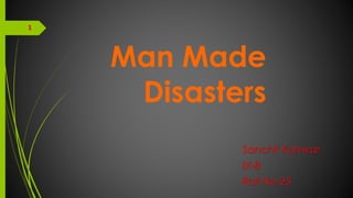 Technological and industrial disasters are two of the most important man-made disasters that can occur as a result of misuse of technology or accidents in industry. These disasters have no predictability as they can occur suddenly due to human error, lack of proper safety measures or training. Some of the worst technological/industrial disasters include the 1984 Bhopal gas tragedy, the 1986 Chernobyl nuclear disaster, and fires and explosions at industrial sites. Chemical, nuclear, biological, and industrial accidents pose major risks if safety procedures are not followed.
