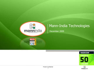 The document provides an overview of Mann-India and its focus on differentiated strategies for high growth in the Latin American market through niche product offerings and dynamic management. It highlights Mann-India's evolution since 2000 focusing on technology development, building relationships and brand recognition in Latin America. It also outlines Mann-India's current product portfolio and services targeting industries like banking, retail, and telecom as well as its facilities and partnerships.