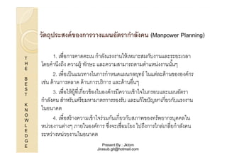 1. เพือการคาดคะเน กําลังแรงงานให้ เหมาะสมกับงานและระยะเวลา