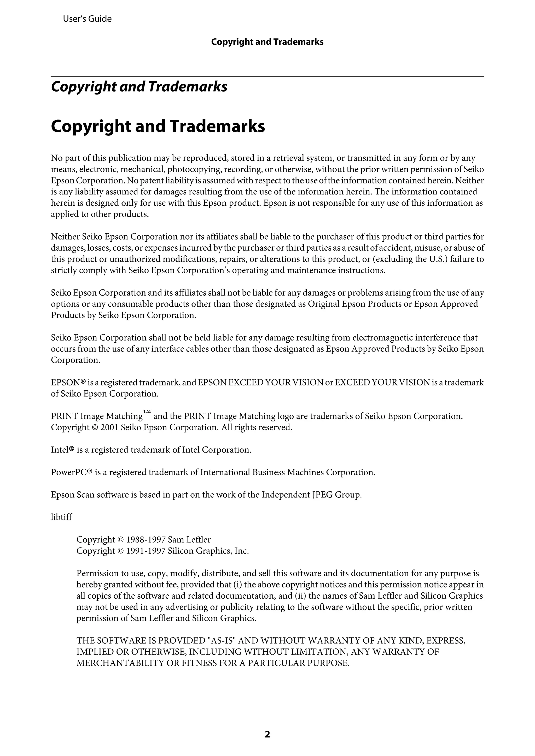 1. Copyright and trademark information stating that no part of the publication can be reproduced without permission.