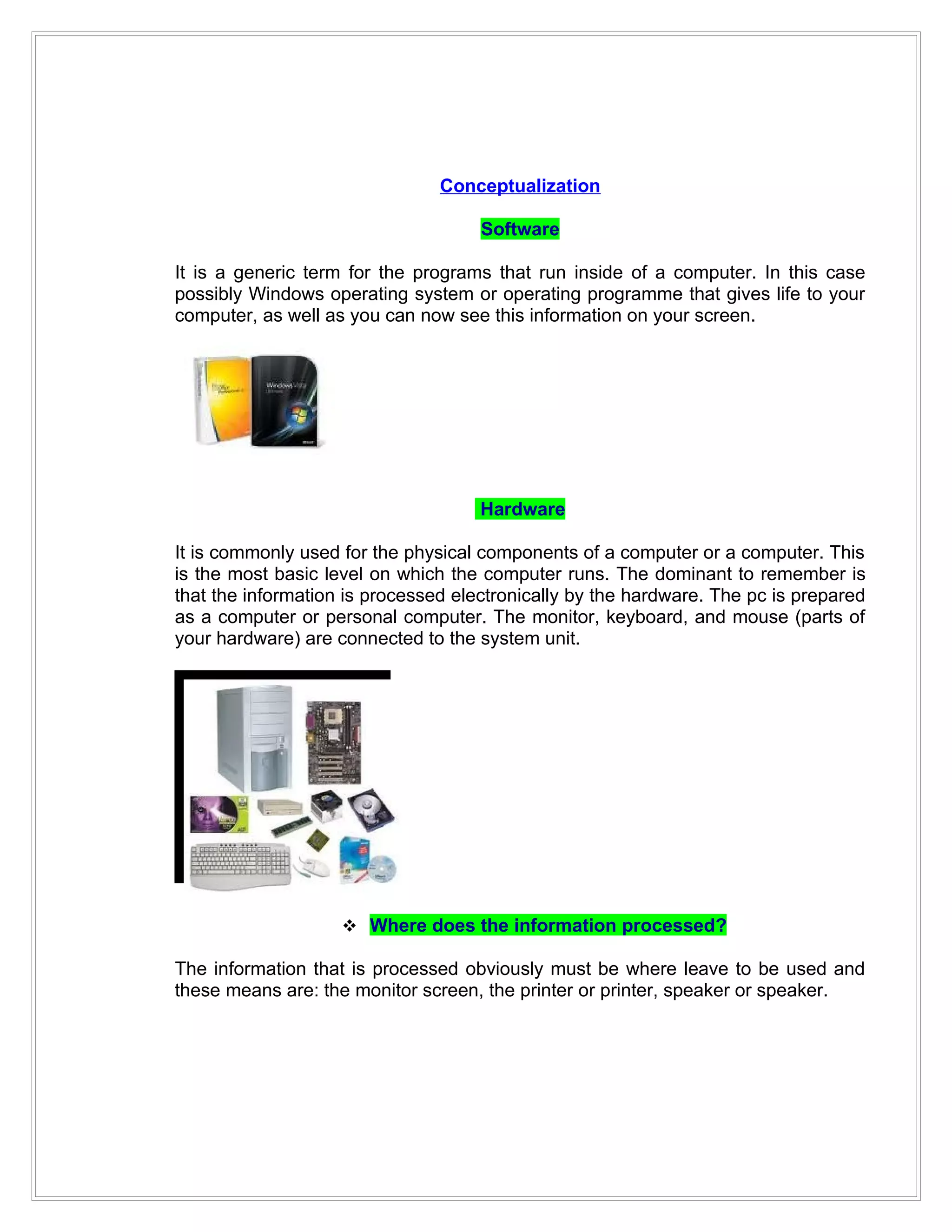 This document provides information on preventive and corrective maintenance of computer hardware and software. It discusses maintaining operating systems, software, hardware components like processors and monitors. Key steps for preventive maintenance include periodic cleaning every 2-6 months depending on computer use to reduce failures and extend equipment life. Corrective maintenance repairs existing problems in software or hardware like replacing failed components.