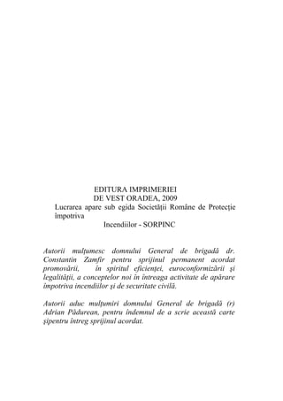 Manualul pompierului, coordonat de Sorin Calotă și autorii Gavril Temian, Viorel Știru, Gabriel Duduc și Ionel-Puiu Golgojan, oferă o sinteză a cunoștințelor esențiale privind prevenirea incendiilor și reglementările legale în domeniu, responsabile pentru securitatea cetățenilor. Lucrarea abordează riscurile specifice și măsurile de apărare necesare, în contextul schimbărilor recente în legislația românească și europeană. Manualul este destinat profesioniștilor, autorităților locale și operatorilor economici, având ca scop creșterea nivelului de securitate împotriva incendiilor în România.