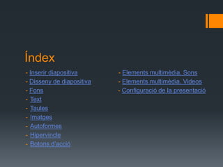 - Disseny de diapositiva - Elements multimèdia. Videos