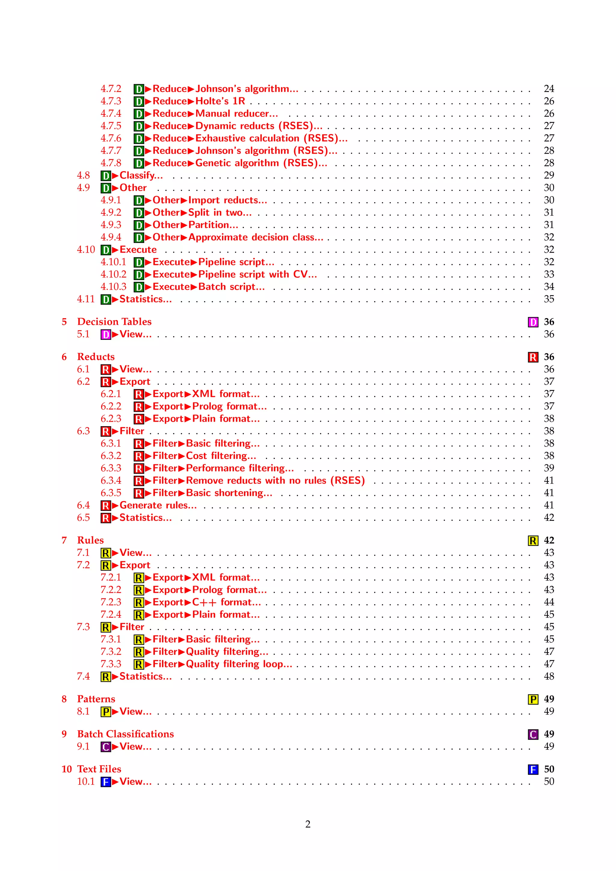 This document provides a technical reference manual for the ROSETTA software. It describes the various modules, functions, and algorithms within ROSETTA for preprocessing data like discretization, attribute reduction, and rule generation. It includes sections that describe functions for loading and viewing data, attribute reduction techniques like genetic algorithms and Johnson's algorithm, discretization methods like boolean reasoning and equal frequency binning, and rule generation.