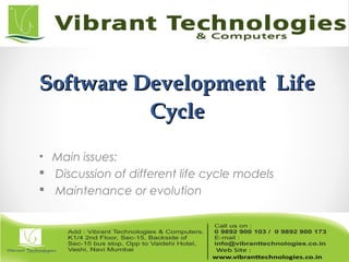 The document discusses different software development life cycle models, including traditional waterfall models, prototyping models, agile models like XP and Scrum, and process modeling approaches. Traditional models like waterfall are document-driven and plan-heavy, while agile models emphasize rapid iteration, customer feedback, and working software over documentation. There is no single best model, as each project requires a customized approach. Process modeling can help define a project workflow but cannot account for all real-world aspects of software development.