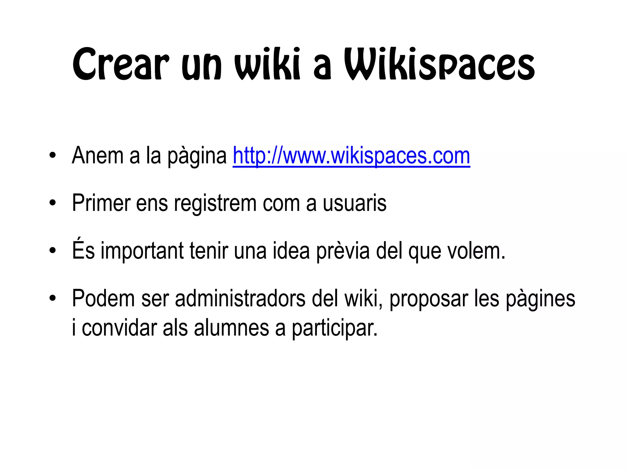 • Anem aWikis for Teachers i fem click a Start your wiki.