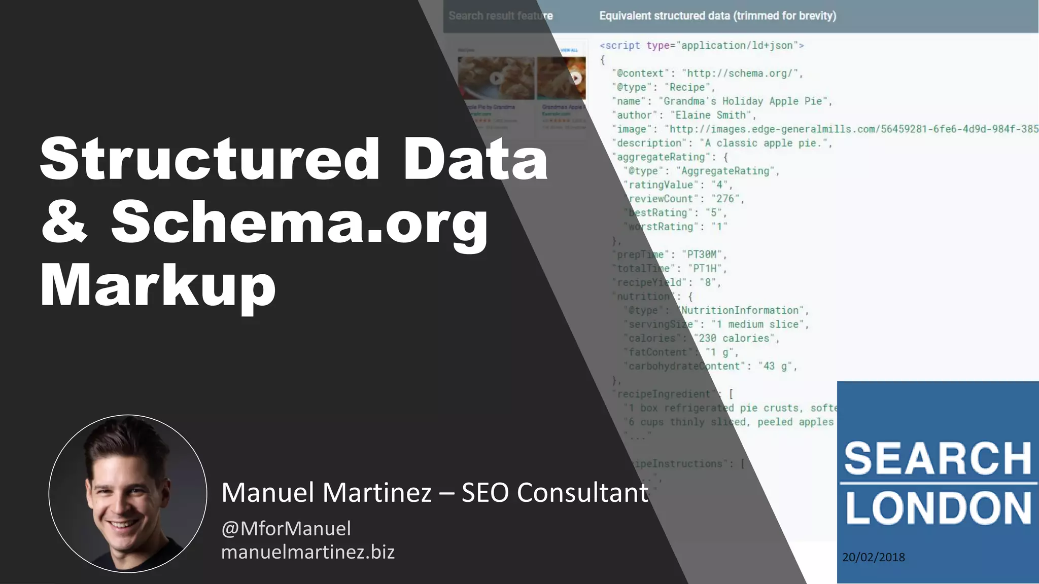 The document discusses the importance of structured data and schema.org markup for SEO, highlighting how it helps Google better understand content through a common vocabulary. It emphasizes the benefits of implementing structured data, including increased click-through rates and improved content visibility, particularly for voice search. Tools for marking up pages with schema.org and measuring success are also mentioned.