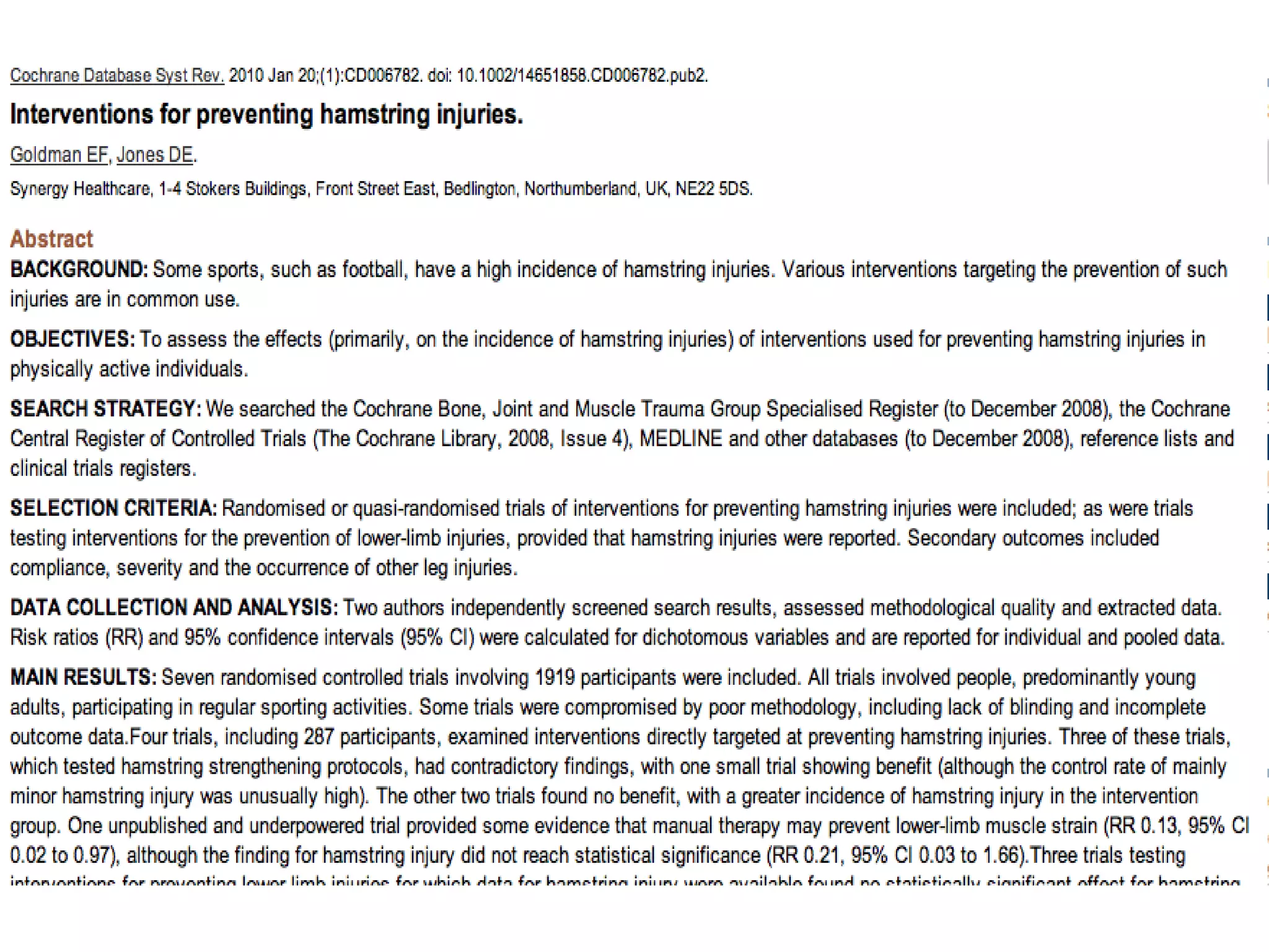 • Joseph (2010)40 kişi kronik reccurent ayak bileği