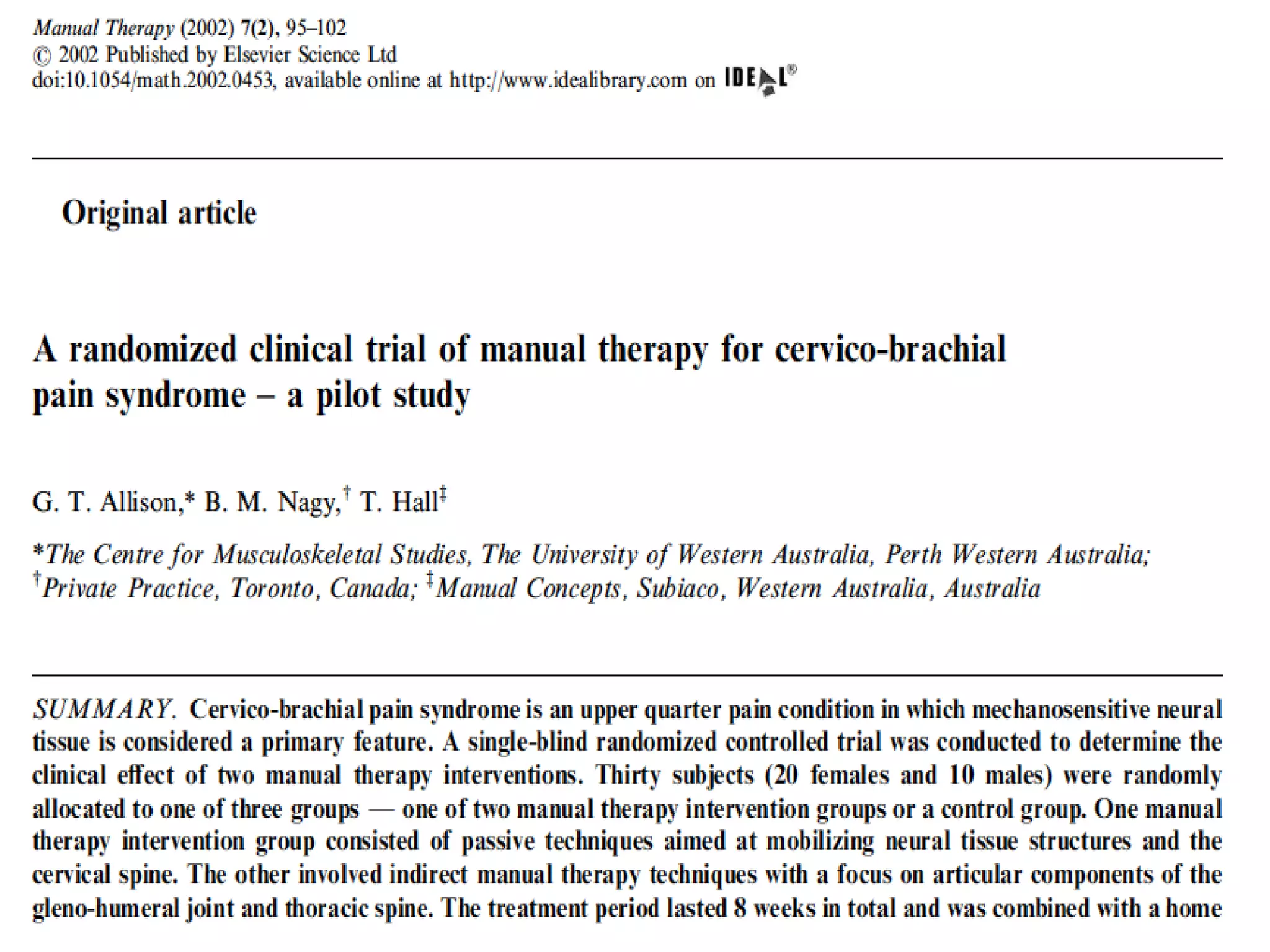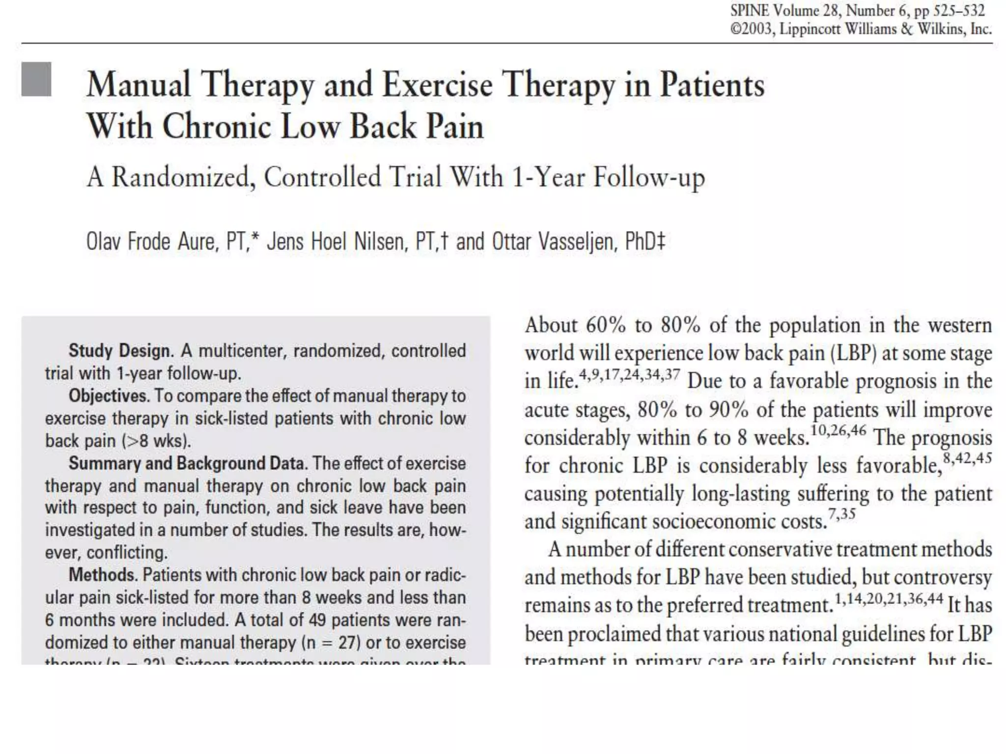 • Sonuçta manuel terapinin küçük ölçüde