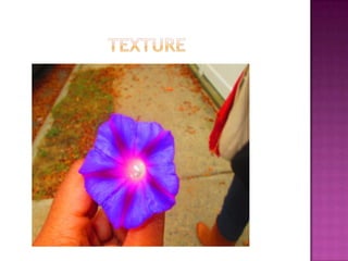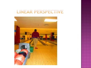 This document discusses the author's photos as examples of the 7 elements of art in photography. The author analyzes their texture photo featuring pronounced colors and visible textures, lighting photo with great pool lighting, and atmospheric photo with contrasting cool sky and warm foreground. They also describe their linear perspective photo of converging lines down a bowling alley and scale photo showing relative sizes of objects in the foreground and background. The author concludes that their examples demonstrate the 7 elements of art well.