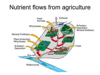 This document discusses manure handling and management. It covers the components of manure, factors that influence manure composition, chemical composition of solid and slurry manure, nutrient availability from manure, aspects of manure handling systems, parameters for planning handling systems, and methods of manure spreading. The document provides information on optimizing manure use and minimizing losses to improve nutrient utilization and environmental impacts.