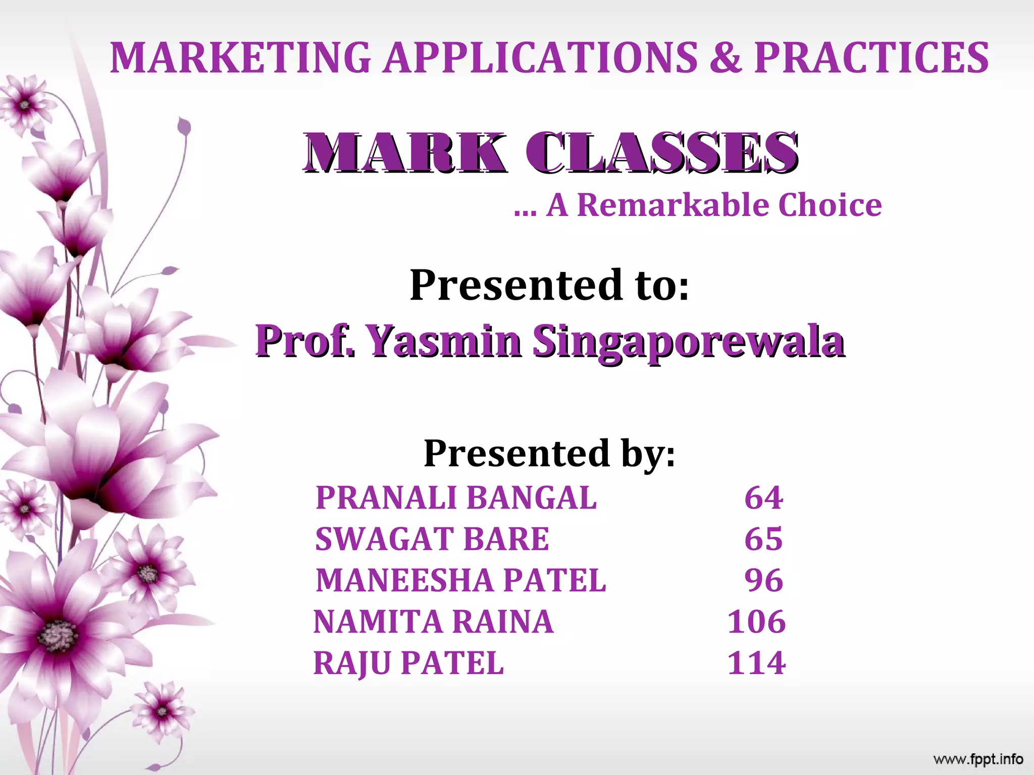 This document provides an overview of Mark Classes, a coaching classes firm located in Mumbai. It discusses the firm's profile, mission, marketing strategies, finances, human resource management, and challenges. Key points include: