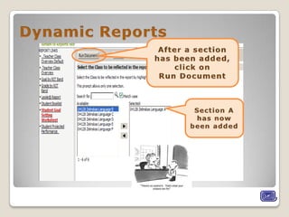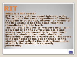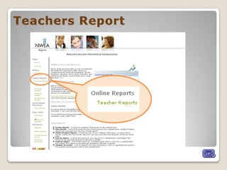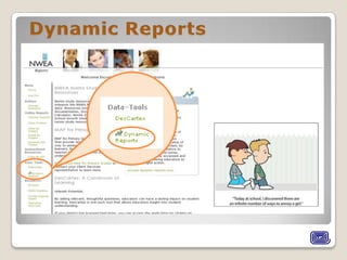 The document appears to be a report on a student's academic progress, strengths, and areas for improvement based on various assessments. It includes the student's RIT score ranges from spring 2011 testing in reading goals, word analysis, comprehension levels, and literature response. The report also mentions teachers can access dynamic reports on subjects and includes a Lexile range for the student.