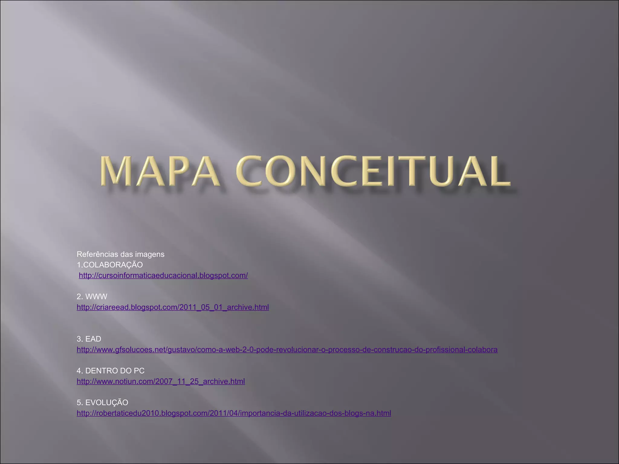 This document provides references for 5 images related to collaboration, the world wide web, distance education, computers, and evolution. It also includes a link to download Bizagi Process Modeler software.