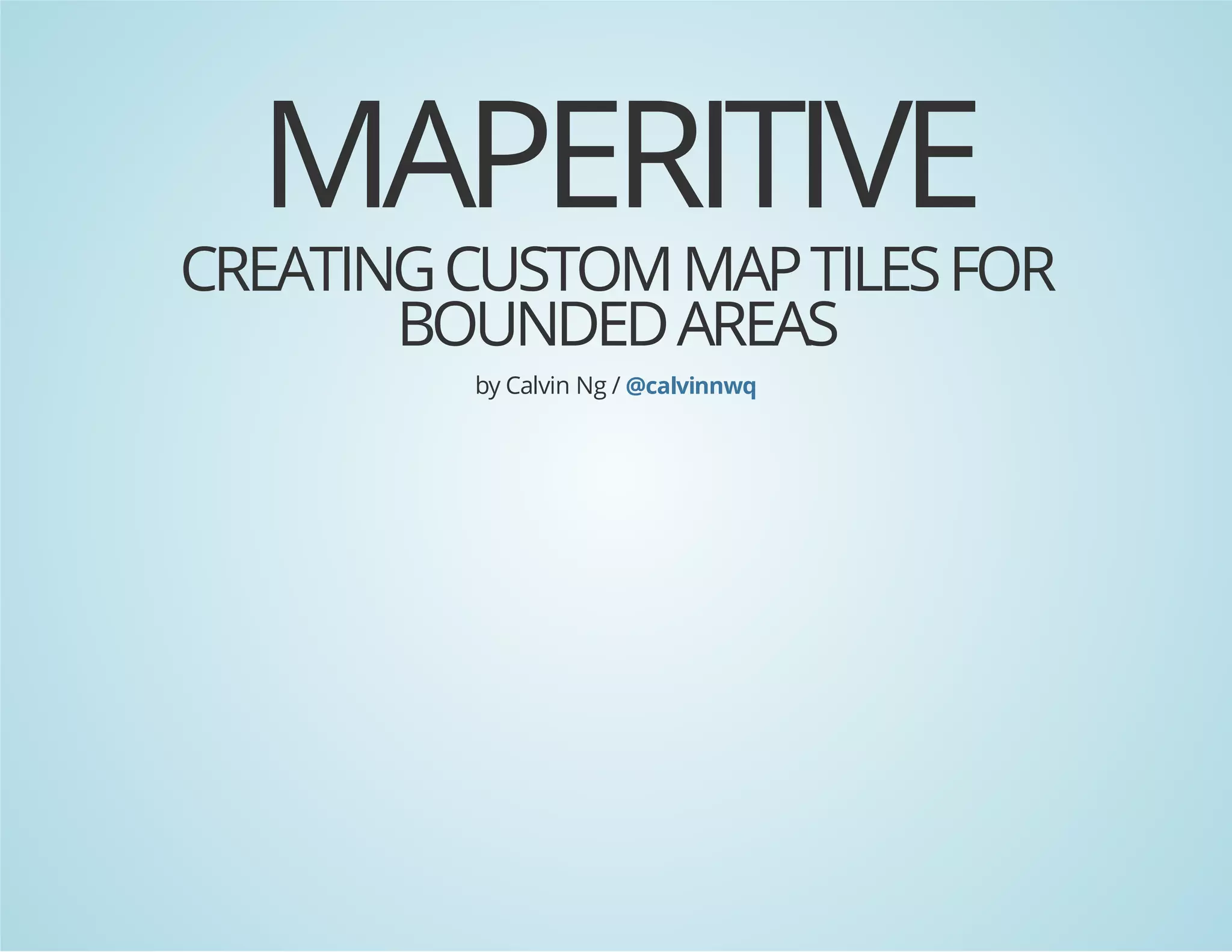 1. Maperitive is a free desktop application that allows users to create custom map tiles for bounded areas by defining map content and styles. It exports map tiles and bitmaps that can be used on the web.