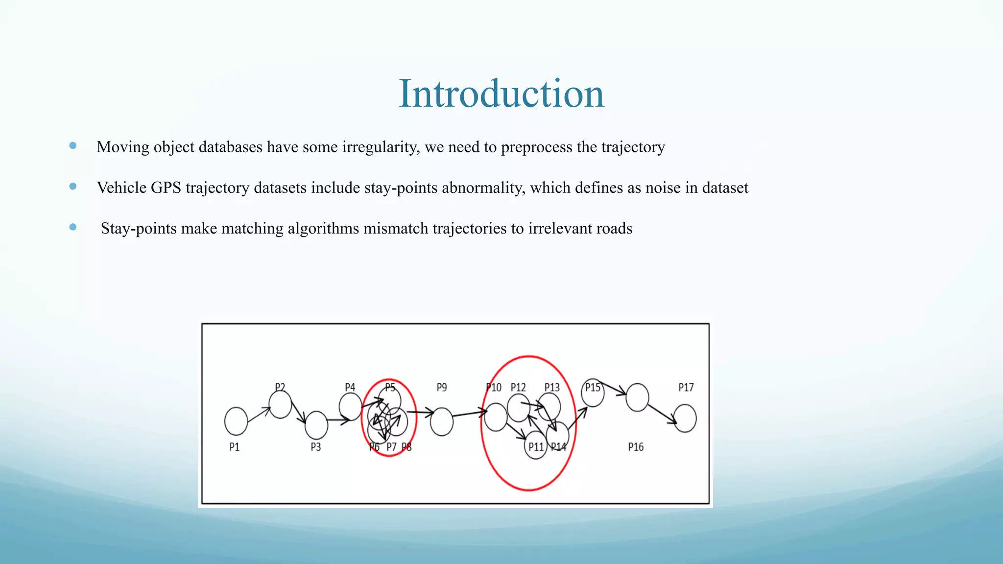 The document discusses improvements to a fuzzy-logic based map-matching method that incorporates trajectory stay-point detection to address data irregularities in vehicle GPS datasets. It evaluates the algorithm's accuracy and efficiency by analyzing the processing time and the number of correct links identified within several mapped trajectories. Key findings demonstrate that the proposed approach enhances the reliability and speed of map-matching compared to previous methods.