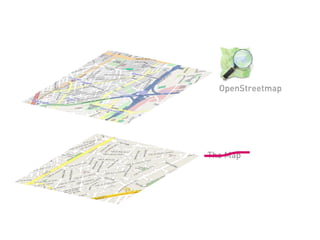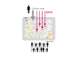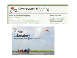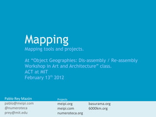 The document outlines various mapping projects and tools related to art and architecture, particularly focusing on waste and civic engagement. It features the work of Pablo Rey Mazón, including initiatives such as 'You are what you throw away' and geotagging efforts in various locations. Additionally, it contains links to related websites and resources from 2006 to 2016.