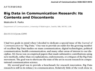 - The development of new research areas like data science, computational social science, and webometrics that utilize digital methods and focus on analyzing online data.