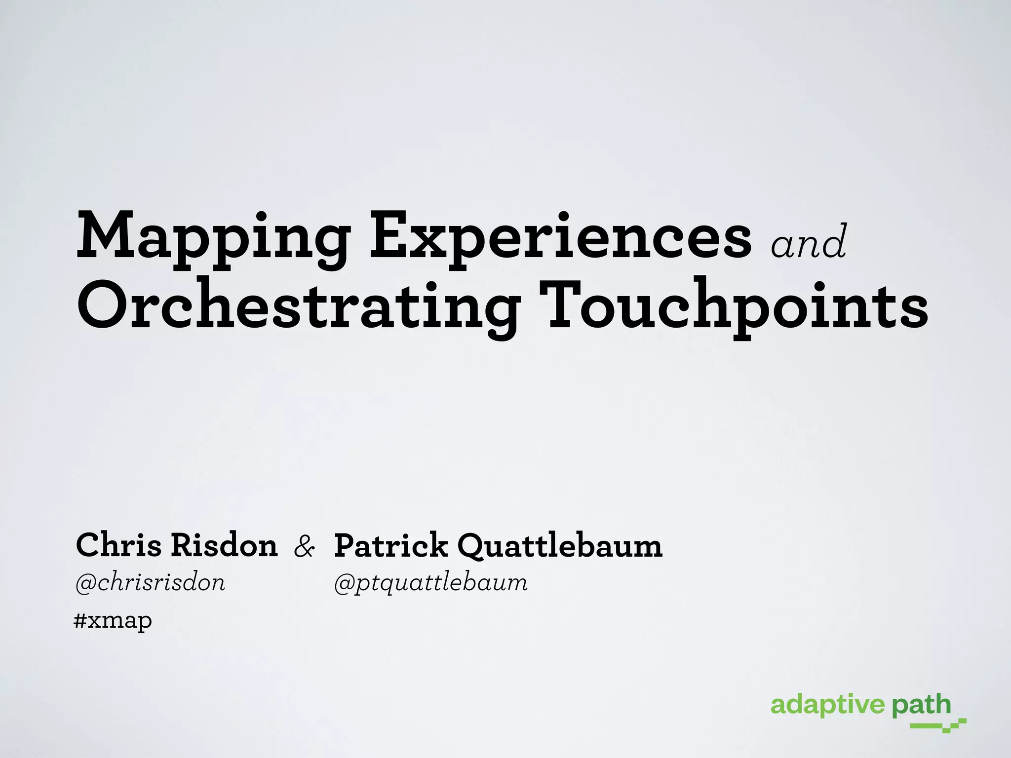 The document outlines an agenda for mapping experiences and orchestrating touchpoints. It discusses experience mapping principles and provides an overview of the following topics: