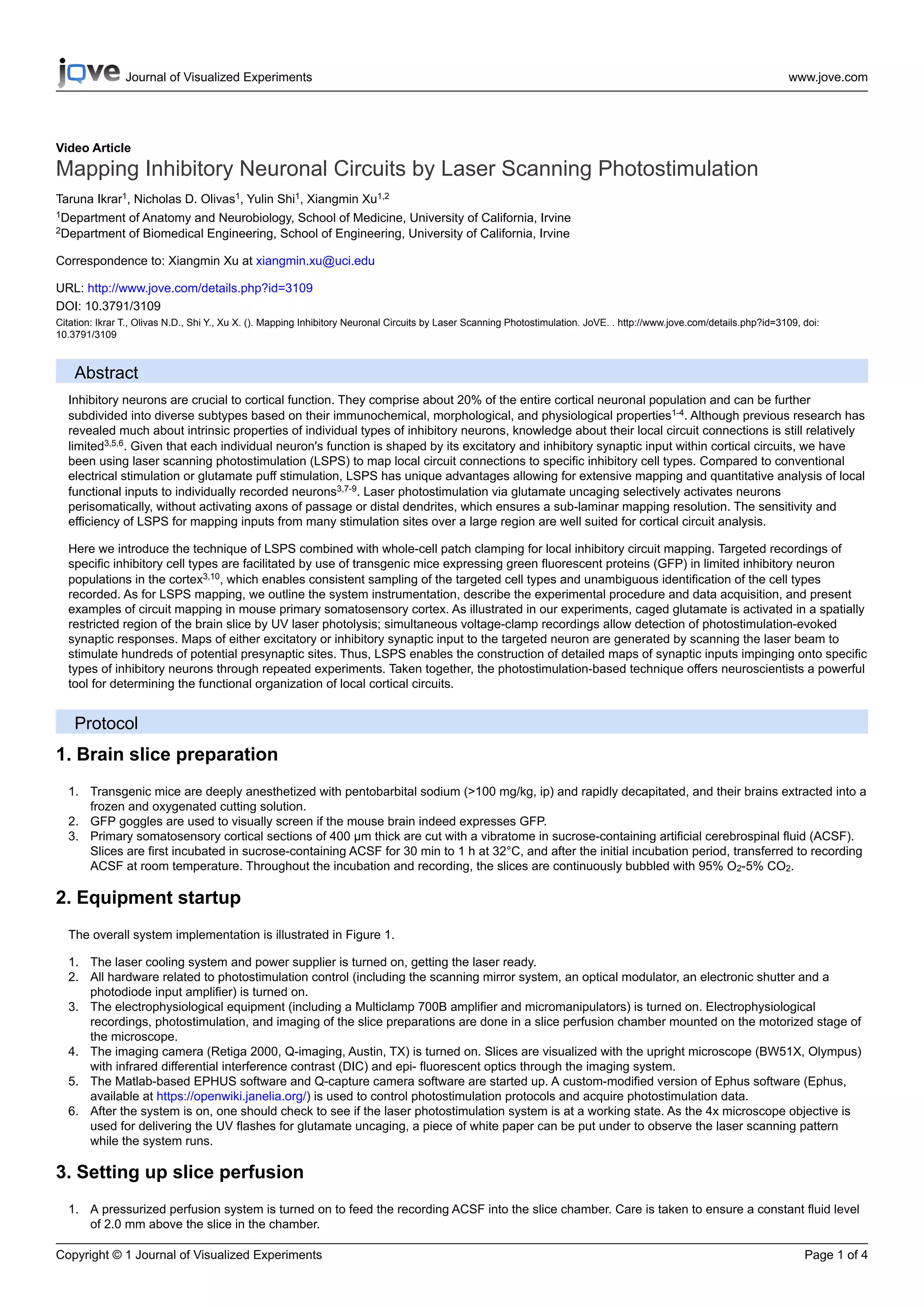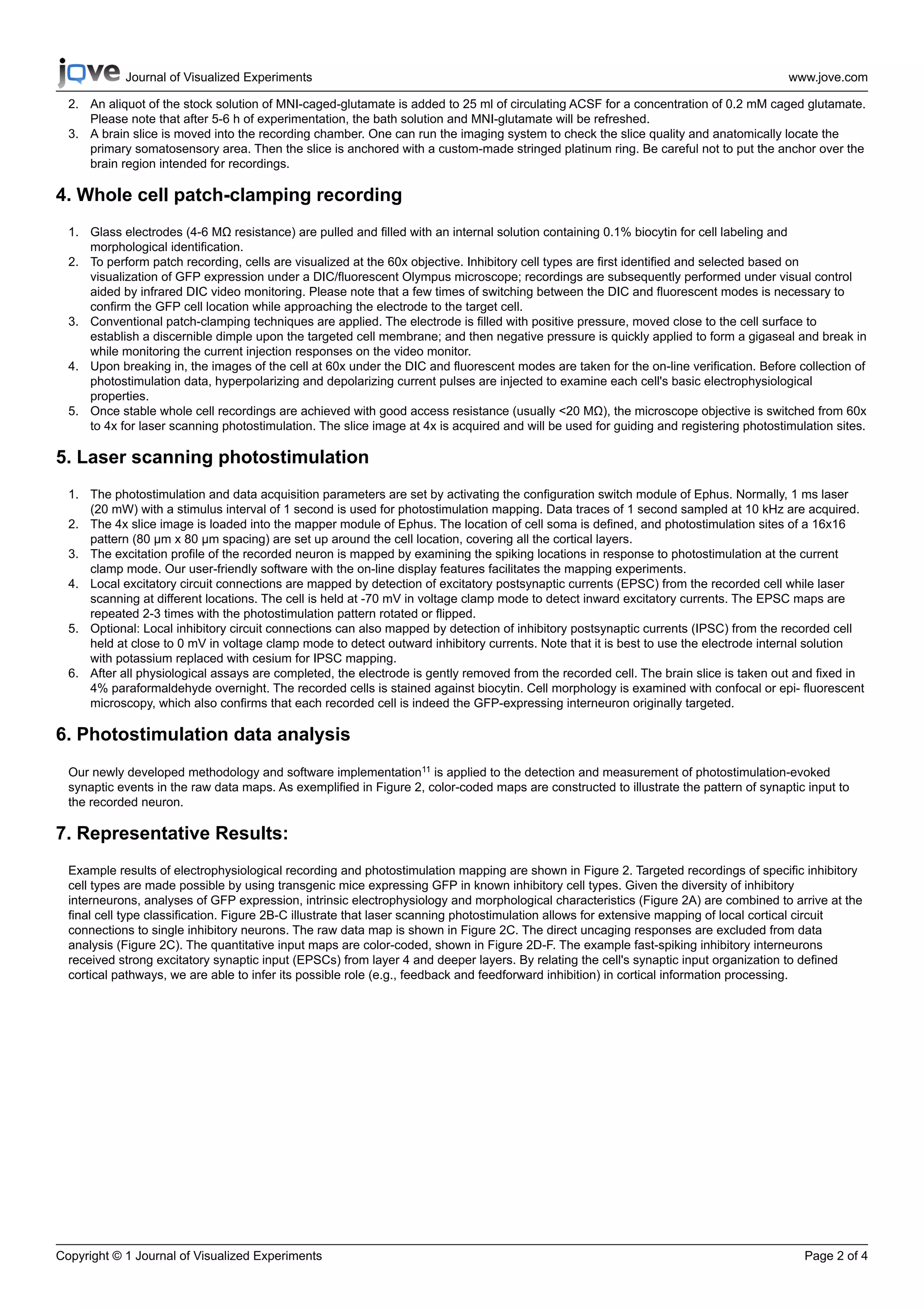 1) The document describes a technique called laser scanning photostimulation (LSPS) combined with whole-cell patch clamp recording to map local inhibitory neuronal circuits.