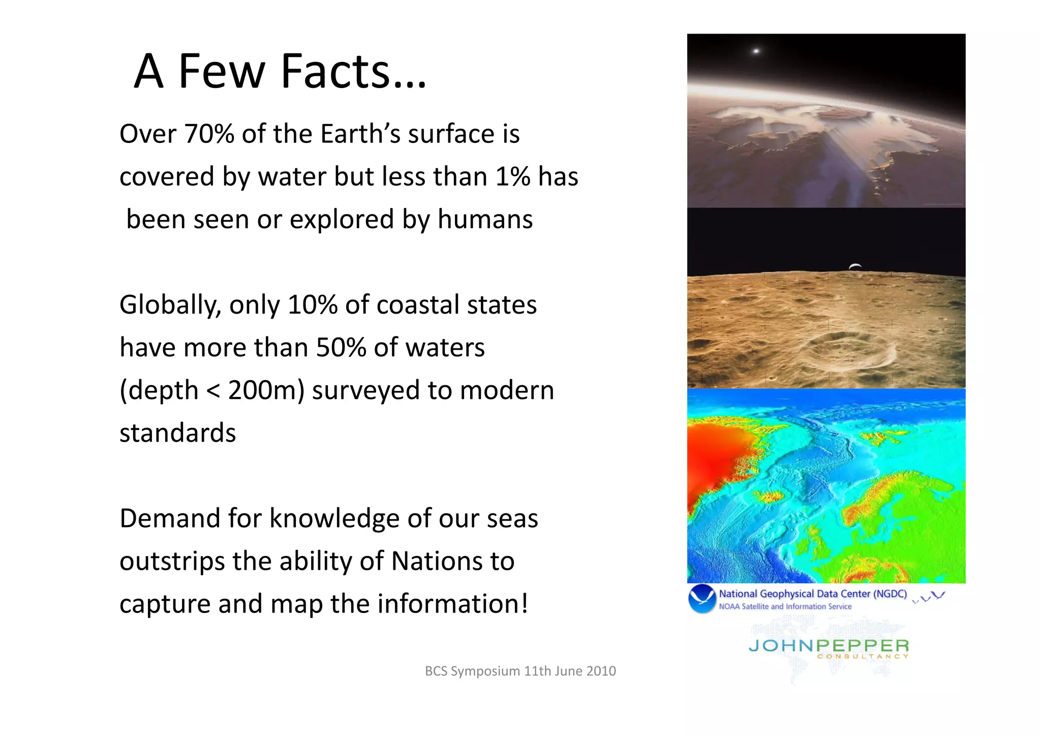 Mapping UK Sea Space involves creating accurate maps of the seafloor and coastal areas through technologies like sonar, LiDAR and aerial imagery. These maps are important for navigation safety, managing human activities like fishing and offshore energy, and understanding the marine environment. While some areas have been mapped, most of the seafloor remains unexplored. New mapping techniques and tools are needed to address this challenge and support uses of the ocean, from infrastructure planning to habitat protection.