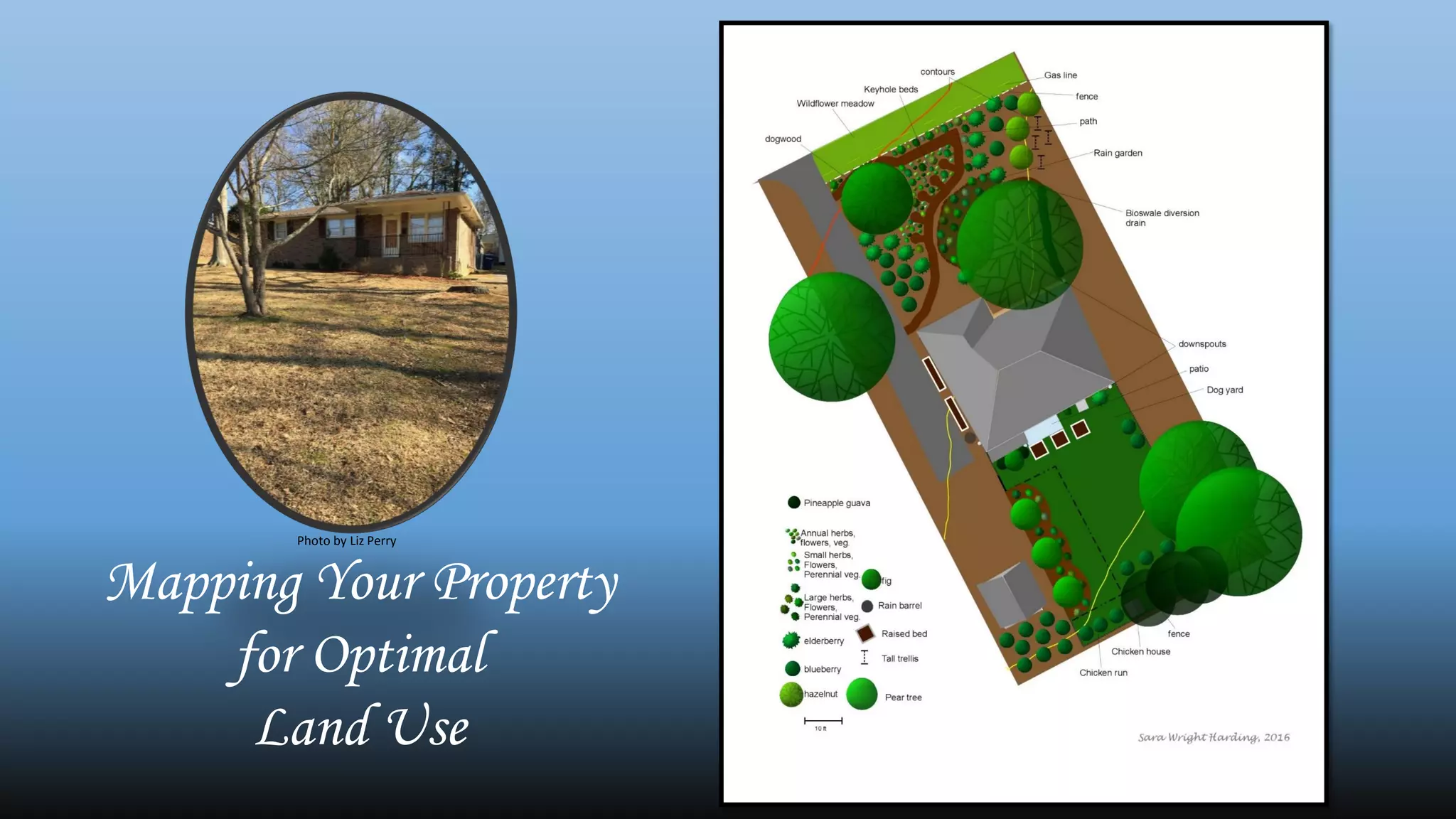 The document outlines strategies for mapping rural and urban properties to optimize land use through permaculture principles. It emphasizes the importance of understanding watershed, soil, climate, and historical use, while integrating tools such as GIS and various data sources. The document also provides resources for further learning and practical applications in property mapping.