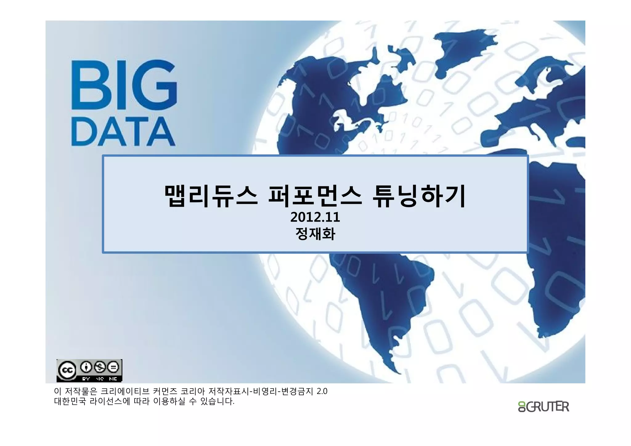 • 맵 태스크의 작업이 단순해서 수초 내에 완료되는 경우 블록 사이즈 조정이 효과가