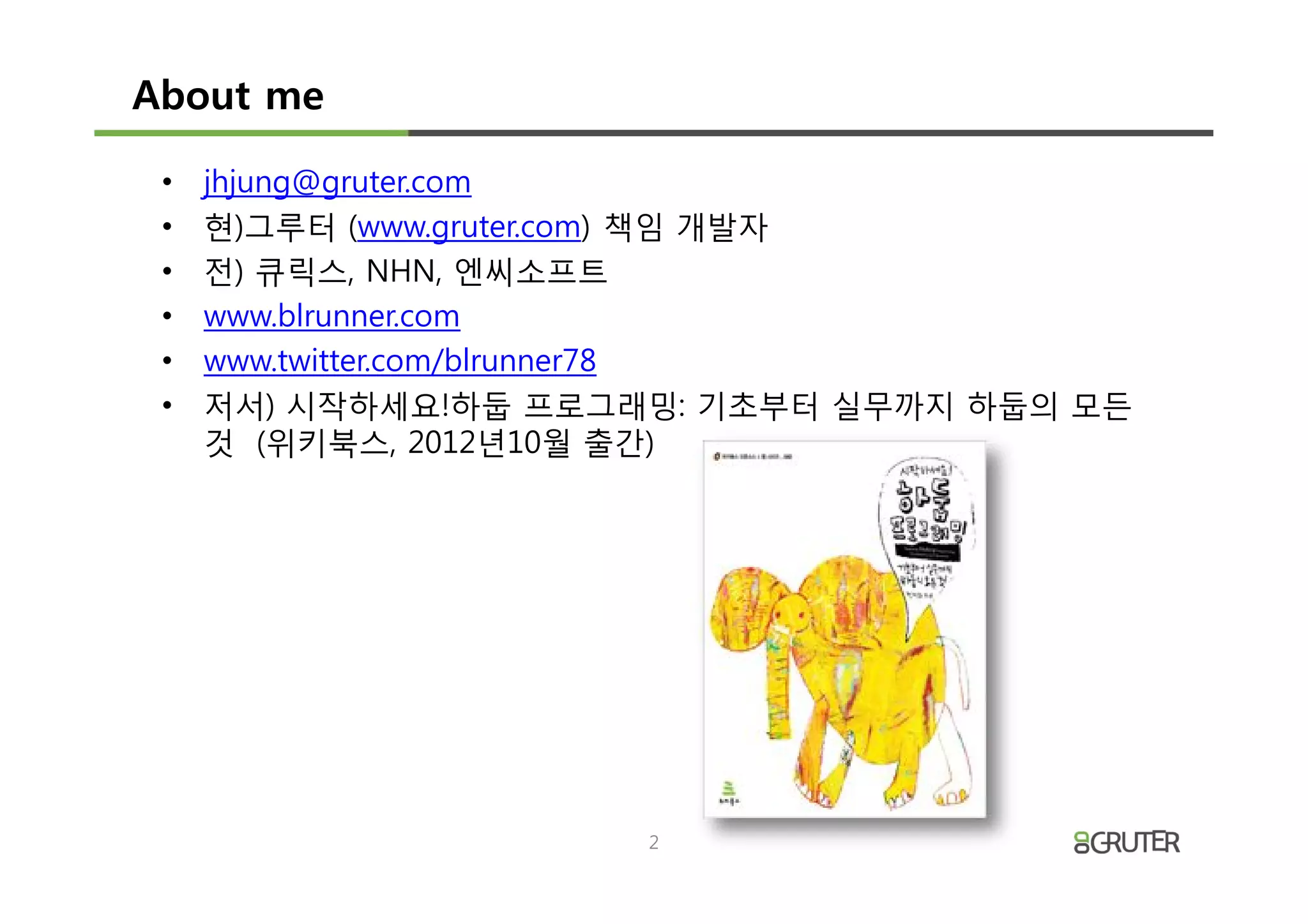 • 저서) 시작하세요!하둡 프로그래밍: 기초부터 실무까지 하둡의 모든