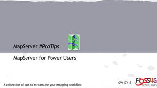 The document provides a collection of tips for power users of MapServer to optimize their mapping workflow, focusing on debugging strategies, securing services, and utilizing features such as projection auto and WFS 2.0. It covers advanced techniques for performance tracking, HTML-based legends, content-dependent legends, and new blending modes introduced in version 7.0. Additional examples and command line utilities are also referenced to enhance user experience and performance in MapServer.