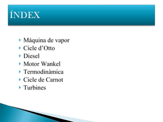 Màquina de vaporCicle d’Otto Diesel Motor Wankel Termodinàmica Cicle de Carnot Turbines